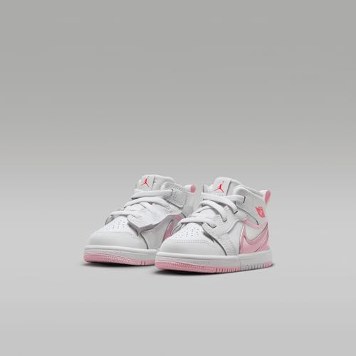 Jordan 1 Mid RM EasyOn Baby/Toddler Shoes (FQ1283-101, White/Fire Red/Pink Foam) 6