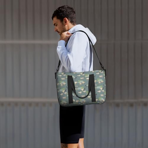 Laptop Tote Bag for Women Work - Painted Cute Goat Green Gym Bag for Women Men, Personal Item Crossbody Travel Bags Carry On, Overnight Weekender Bags for Women Travel 5