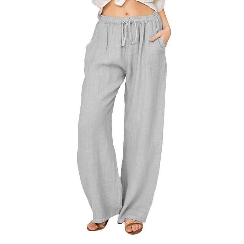 HOT ! Women's Normal Culottes Wide Leg Wide Leg Cotton Linen Pants Fashion Full Length Mid Waist Plain Side Pockets Wide Leg Baggy Comfort Inelastic Casual Weekend Light Blue Black White Wine Loose Fit