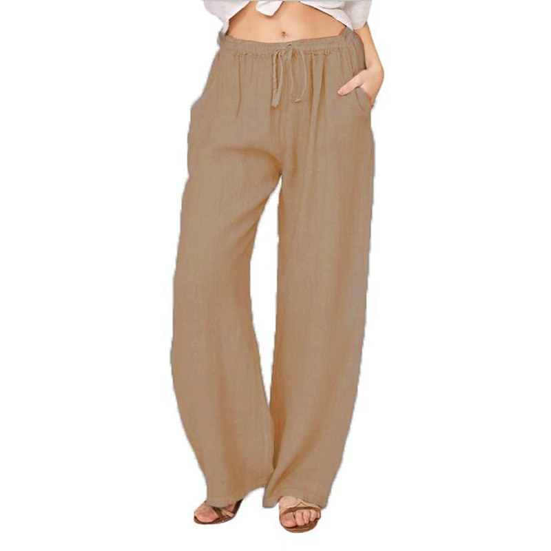 More information about Women's Normal Culottes Wide Leg Wide Leg Cotton Linen Pants Fashion Full Length Mid Waist Plain Side Pockets Wide Leg Baggy Comfort Inelastic Casual Weekend Light Blue Black White Wine Loose Fit