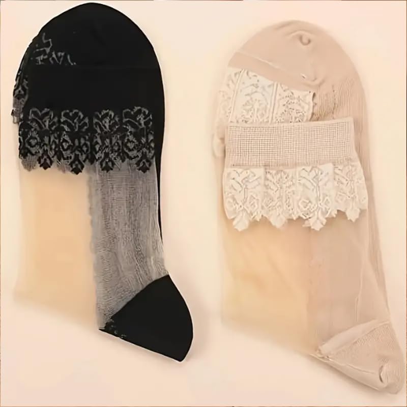 HOT ! 3 Pairs Thin Lace Mesh Socks, Breathable And Charming Crew Socks