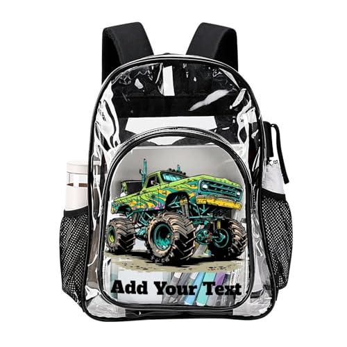 More information about MoBlinko Personalized Clear Backpack Heavy Duty PVC Gree Monster Truck Custom Name Large Transparent Backpack Bag DIY School Backpack