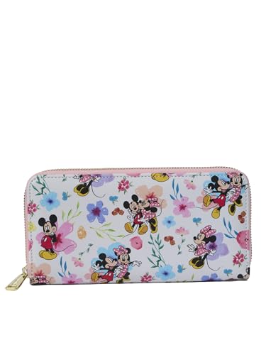 Loungefly Disney Mickey Minnie Mouse Wallet Zip Clutch AOP Floral Saffiano Faux Leather 1