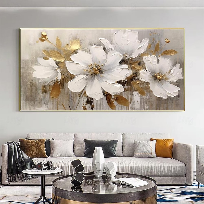 $58.99 - Mintura Handmade Gold Floral Oil Paintings On Canvas Large Wall Art Decoration Modern Abstract White Flower Picture For Home Decor Rolled Frameless Unstretched Painting 2025. Shop for cheap Floral/Botanical Paintings online? Buy at lightinthebox.com on sale today!