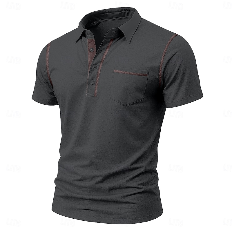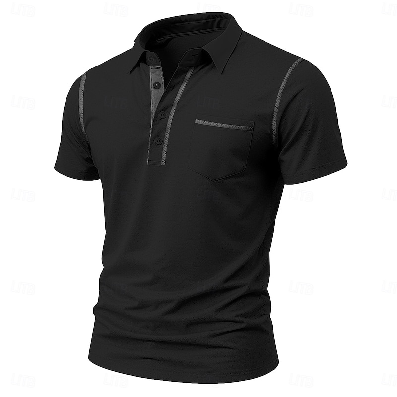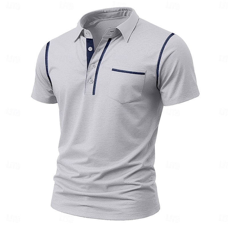 More information about Men's Cotton Blend Polo Shirt Golf Shirt Casual Sports Classic Short Sleeve Fashion Cool Color Block Pocket Buttons Summer Spring Spring & Fall Slim Fit Dark Grey Black White Burgundy Navy Blue Dark