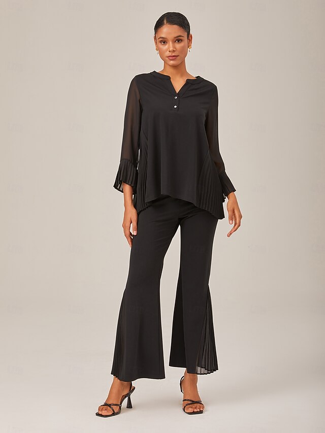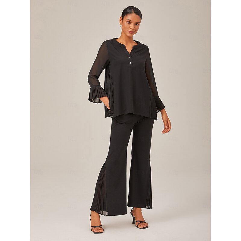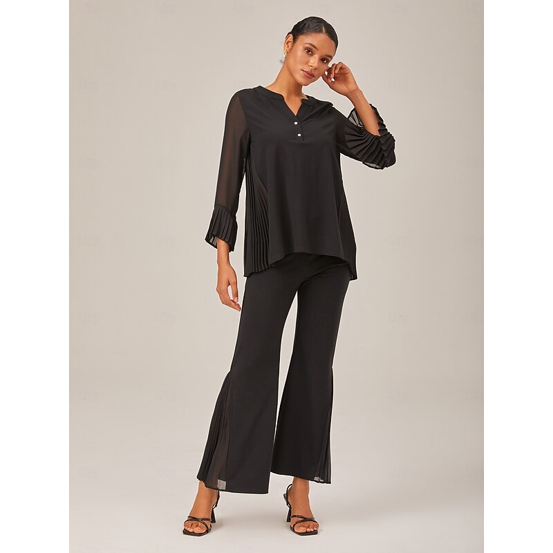 More information about Black Contrast Design Pleated Fabric Set