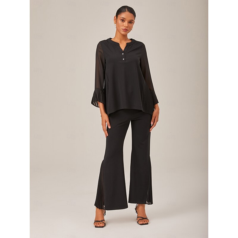 Highlights Key Selling Points: - Flattering high waistline - Elegant ruched design - Stylish pleated detailing - Sophisticated V-neck neckline