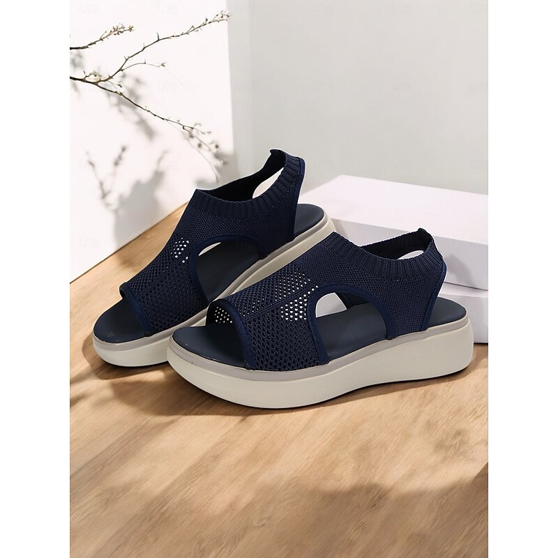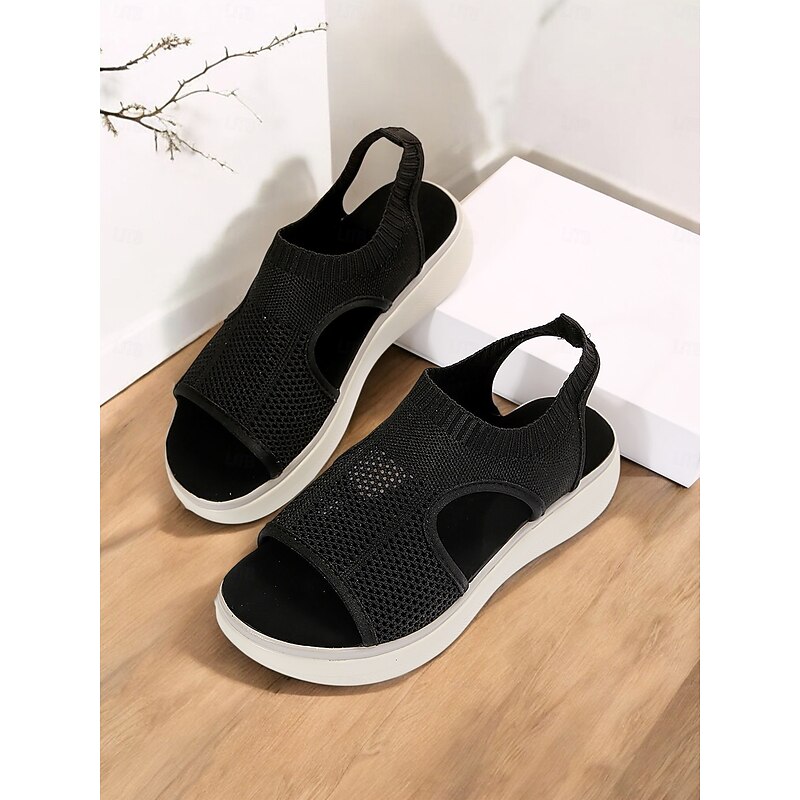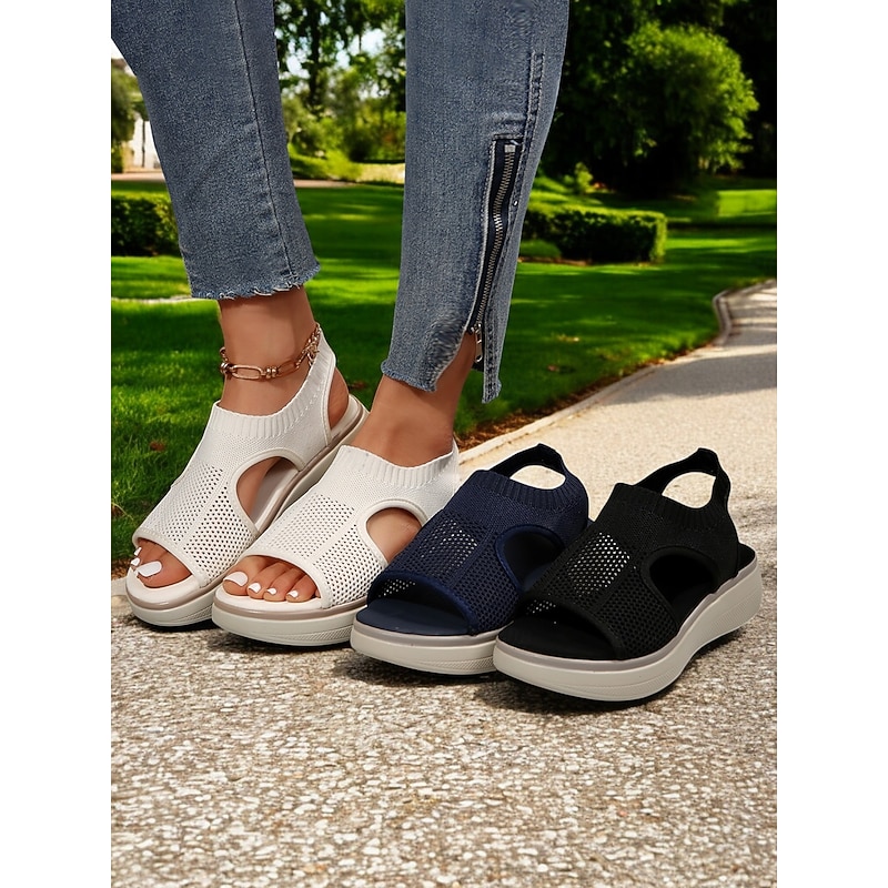 HOT ! Women's Breathable Knit Slip-On Platform Sandals – Casual Open-Toe Comfort Footwear for Summer walking, Casual Outings and Travel