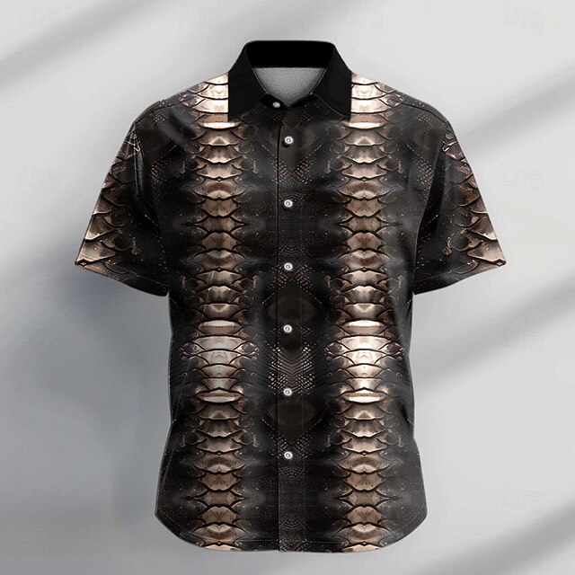 More information about Men's Snake Skin Pattern Shirt Button Up Shirt Short Sleeve Casual Dark Vacation Daily Evening Party Summer Turndown Collared Shirts Buttons Print Black Brown