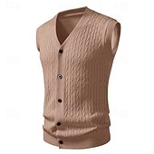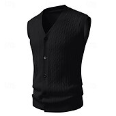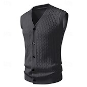 More information about Men's Sweater Sweater Vest Cardigan Sweater Ribbed Knit Regular Tops Knitted Ribbed Plain V Neck Vacation Fashion Casual Daily Wear Clothing Apparel Fall Winter Black Yellow L XL 2XL