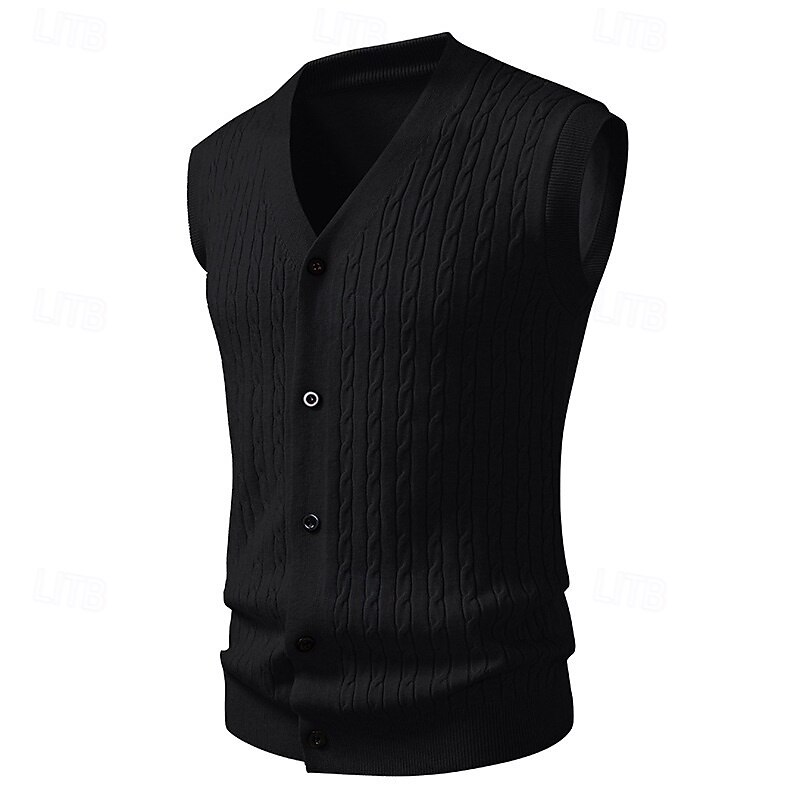 Men's Sweater Sweater Vest Cardigan Sweater Ribbed Knit Regular Tops Knitted Ribbed Plain V Neck Vacation Fashion Casual Daily Wear Clothing Apparel Fall Winter Black Yellow L XL 2XL 15