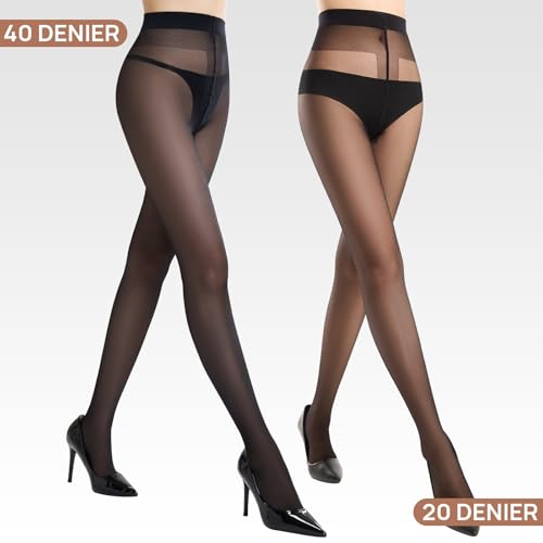 MANZI 2 Pairs Women's Sheer Tights T-Crotch Pantyhose Combo with 20 and 40 Denier Sheer to Waist Tights High Waist Stockings 1