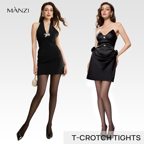 More information about MANZI 2 Pairs Women's Sheer Tights T-Crotch Pantyhose Combo with 20 and 40 Denier Sheer to Waist Tights High Waist Stockings