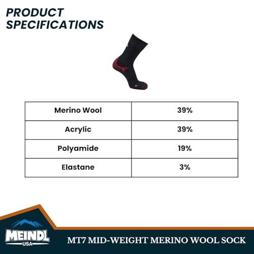More information about Meindl Men's MT7 Mid-Weight Merino Wool Boot Socks | Hiking | Trekking | Mountaineering | Made in Italy