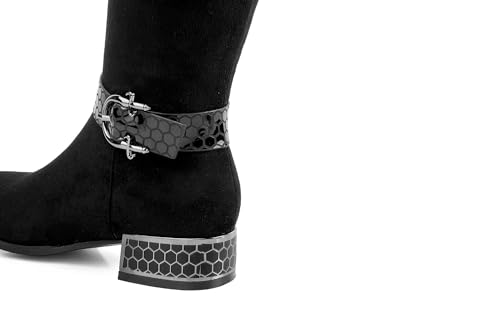 More information about ANN CREEK Women's 'Orizea' Low Block Heel Beehive Patterned Straps Faux Suede Boots
