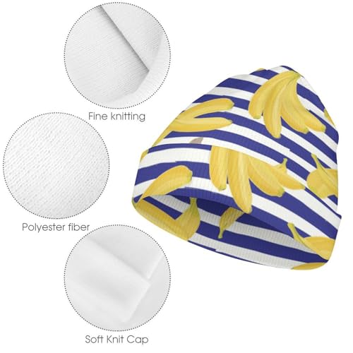 Banana On Blue Stripes Pattern Kids Beanie Hat for for Girls Boys Children Cap Winter Knitted Chemo Cancer Headwear Accessories Gifts Decoration 5