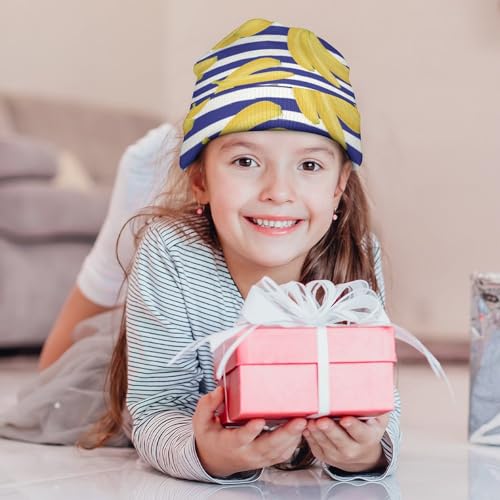 Banana On Blue Stripes Pattern Kids Beanie Hat for for Girls Boys Children Cap Winter Knitted Chemo Cancer Headwear Accessories Gifts Decoration 6