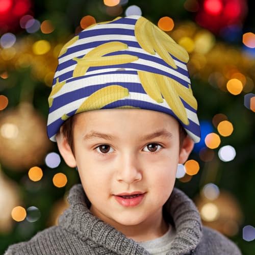 HOT ! Banana On Blue Stripes Pattern Kids Beanie Hat for for Girls Boys Children Cap Winter Knitted Chemo Cancer Headwear Accessories Gifts Decoration