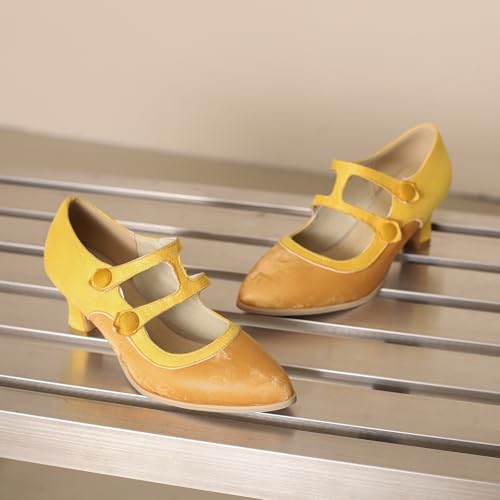 Women's Vintage Mixed Colors Oxfords Pumps Elegant Block Heel Double Strap Brogue 1