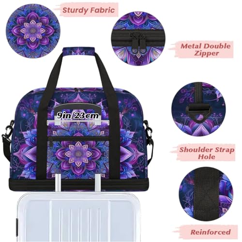 HOT ! Large Weekender Overnight Bags Travel Duffel Bag for Women Men Purple Ethnic Mandala Gym Bag With Shoe Compartment Foldie Travel Tote Bag Carry On Personal Item Bag for Travel Gym Sports