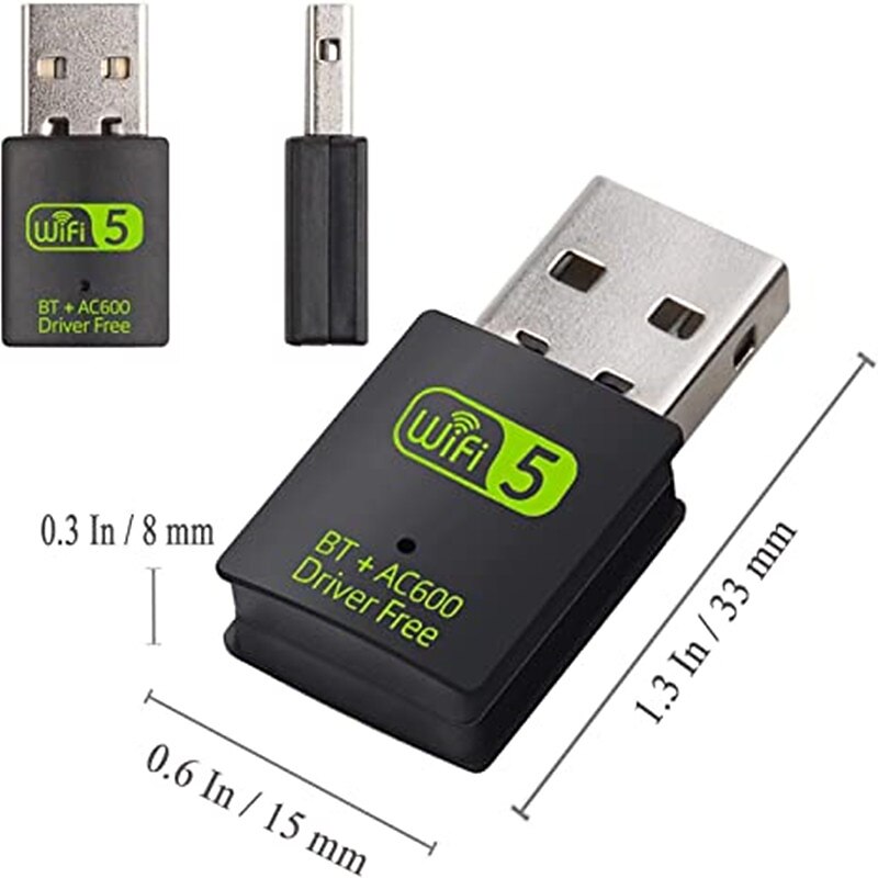 USB WiFi Bluetooth Adapter 600Mbps Dual Band 2.4/5Ghz Wireless Network External Receiver Mini WiFi Adapter for PC/Laptop/Desktop 8