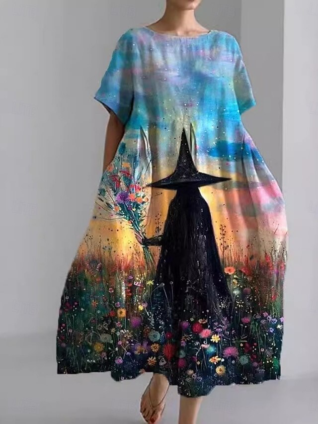 This Halloween Women's Witch Print Midi Dress A Line Dress Summer Dress Casual Daily Regular Fit Graphic Short Sleeve Crew Neck Yellow Blue Purple Green Summer combines elegant design with practical functionality. Every detail has been carefully considered to ensure you get the best possible experience. The exceptional construction means this product will serve you well for years to come.