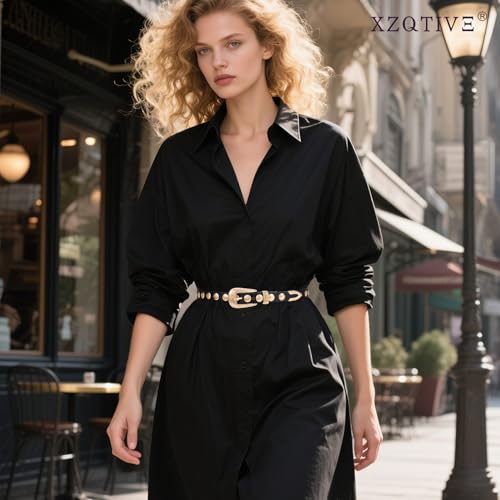 XZQTIVE Women's Punk Studded Skinny Belt – Western Belt with Engraved Buckle for Jeans & Dresses 5