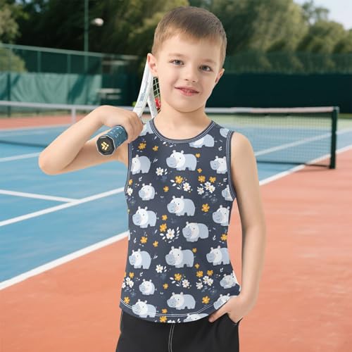 Boys Tank Top Shirts Hippo Cartoon Animal Flower Sleeveless T-Shirts Crew Neck for Kids Clothing Children
