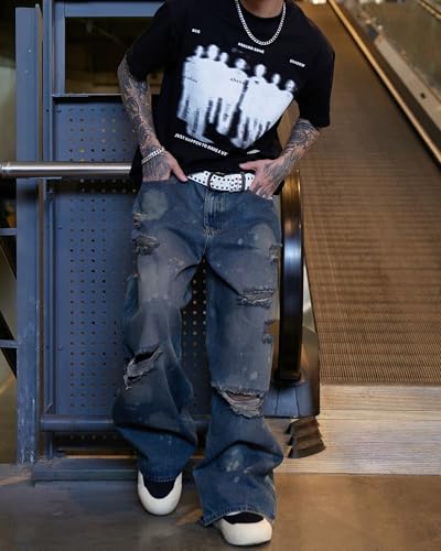 Men's Hip Hop Baggy Jeans Casual Wide Leg Y2k Skateboard Vintage Denim Pants 1