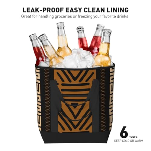 African Mud Cloth Large Capacity Insulated Shopping Tote Bag – Keeps Food Cold/trending For Hours, Ideal For Travel, Groceries & Outdoor Use