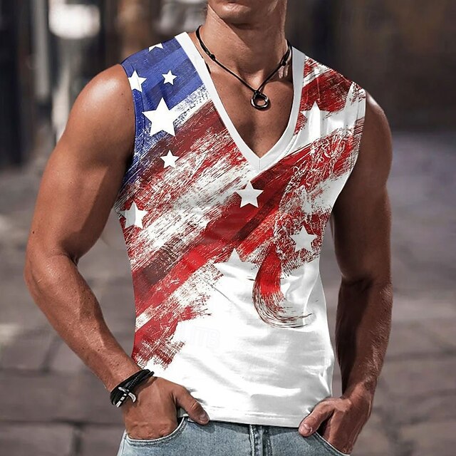 More information about Veterans Day Men's Patriot Patriotic Veteran Graphic National Flag Tank Top Vest Top Sleeveless T Shirt for Men Sleeveless T shirt 3D Print V Neck Shirt Designer Casual Muscle Sports Running Gym Red