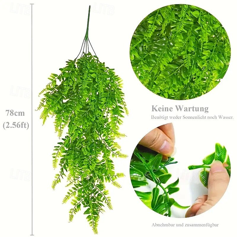 12-Pack Artificial Hanging Boston Fern Plants 32-Inch Realistic No-Maintenance Faux Greenery for Indoor/Outdoor Decor, Weddings, Exhibitions, Thanksgiving, Christmas & Halloween 7