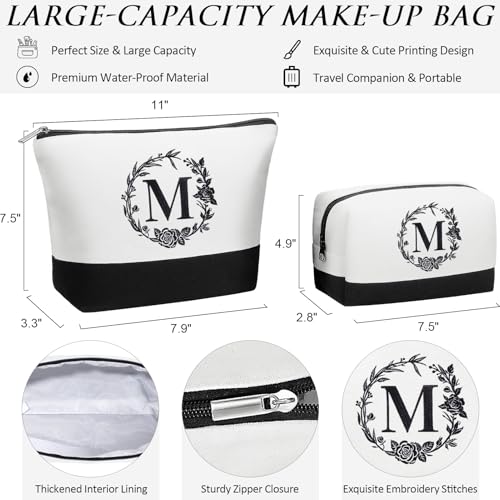 • LARGE CAPACITY: This initial tote bag for women (17" x 13" x 6.7") is spacious enough for clothes, shoes, laptops, etc. The canvas tote bag works as a grocery storage bag, shopping or gym bag, travel tote bag, beach bag. The large cosmetic bag (11" x 7.5" x 3.3") and small makeup bag (7.5" x 4.9" x 2.8") provide secure, organized spaces for makeup, toiletries, or snacks. With its versatile design, it makes practical gifts for women on the go, perfect for travel, everyday use, or as a snack pouch