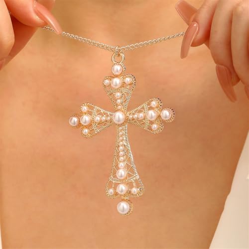 • Y2K - Inspired Trendy Design: These 4pcs chunky cross necklaces for women are a nod to the iconic Y2K style. With their large long cross pendants, they make a bold statement. The gold and silver tones, along with pearl accents, create a captivating look that combines glamour and edginess. Whether you're reliving the Y2K era or simply love making a fashion statement, these pearl cross charm necklaces are perfect for adding a touch of nostalgia and trendiness to your outfit