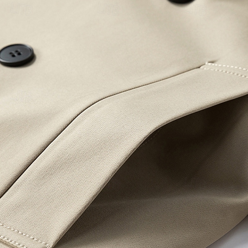 More information about Men's Overcoat Trench Coat Long Trench Coat Vacation Daily Fall & Winter Polyester Windproof Soft Outerwear Clothing Apparel Fashion Classic Plain Pocket Lapel Double Breasted