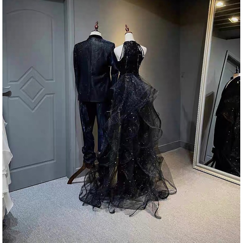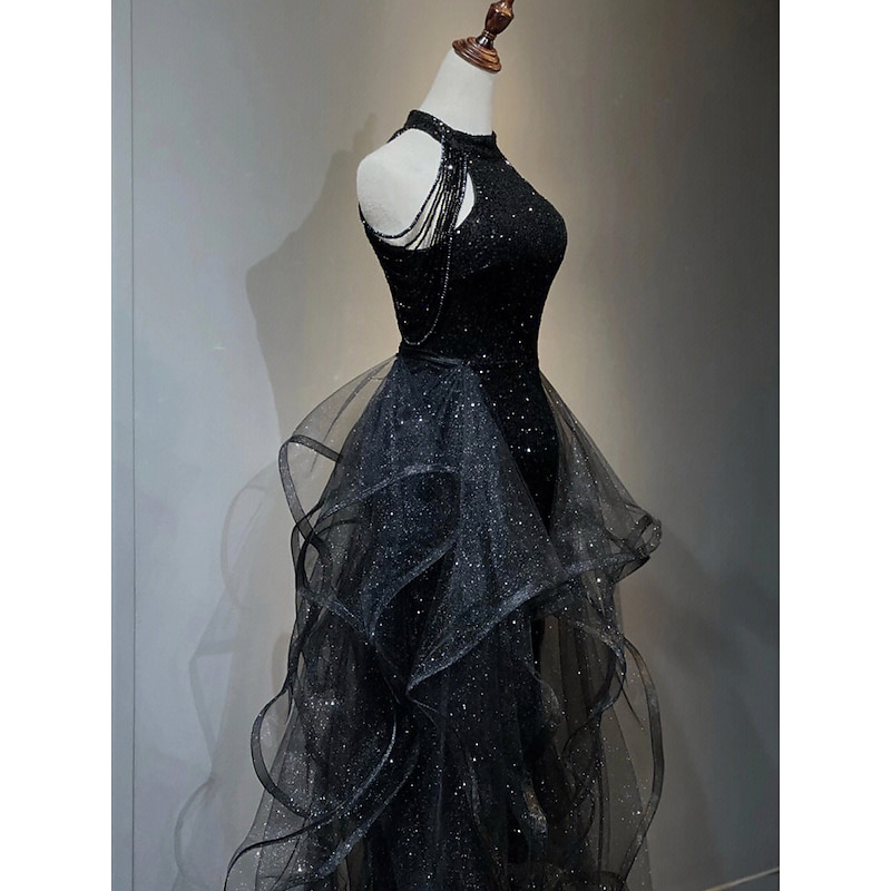 This A-Line Prom Dresses Vintage Dress Wedding Guest Wedding Party Sweep / Brush Train Sleeveless Halter Neck Sequined with Crystals Sequin Ruffles Masquerade Dress combines elegant design with practical functionality. Every detail has been carefully considered to ensure you get the top possible experience. The supreme construction means this product will serve you well for years to come.