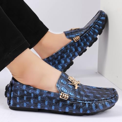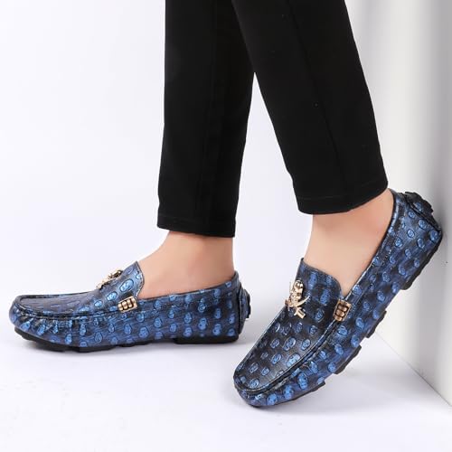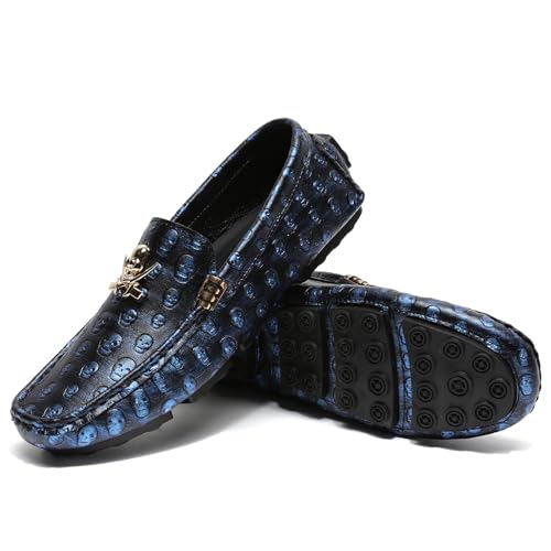 Men's Leather Driving Loafers Slip-on Moccasins with Skull Pattern Metal Buckle Outdoor Walking Penny Casual Shoes 7