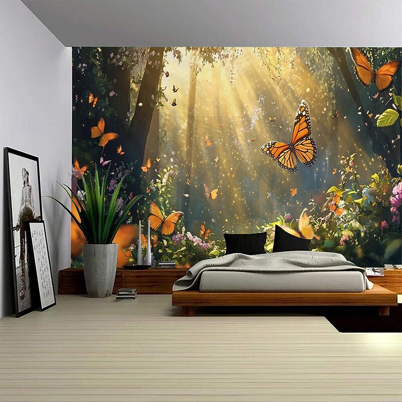 $15.99 - A forest plant flower butterfly path landscape hanging tapestry mural art large tapestry mural decoration photo background carpet curtain home bedroom living room decoration 2025. Shop for cheap Forest Tapestry online? Buy at lightinthebox.com on sale today!