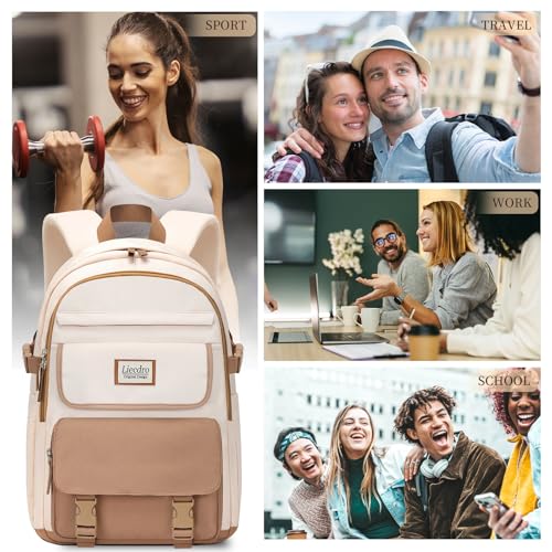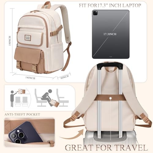 17.3 inch laptop backpack for women, Girls backpacks, Cute backpack for school, College middle high school students book Bag, Water resistant bookbag for girls, mochilas escolares para niñas, Beige 4