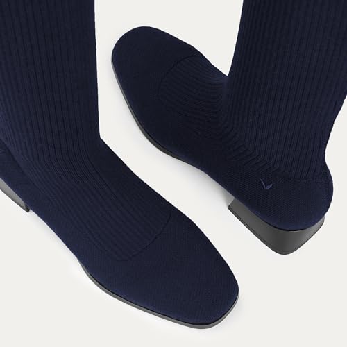 VIVAIA Tara Pro Women's Water Repellent Wool Knee-High Boots Slip on Square-Toe Booties 1.18'' Block Heel Booties Lady Dress Short Winter Fall Boots 7