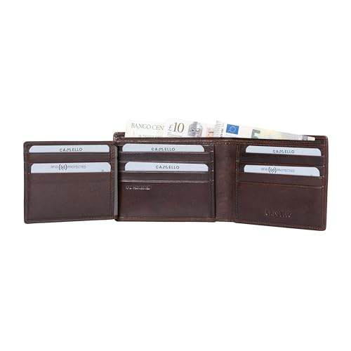 HOT ! CAMELLO Bi-Fold Wallet, Premium Crunch Leather, 3 Slip Pockets, 11 Card Slots, 1 ID Slot, 2 Bill Compartments (Brown)