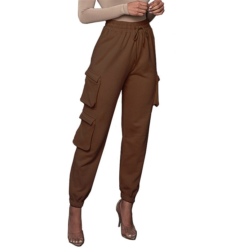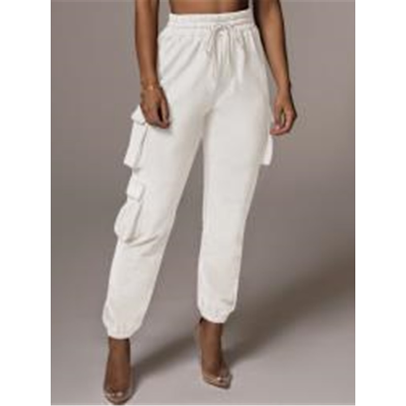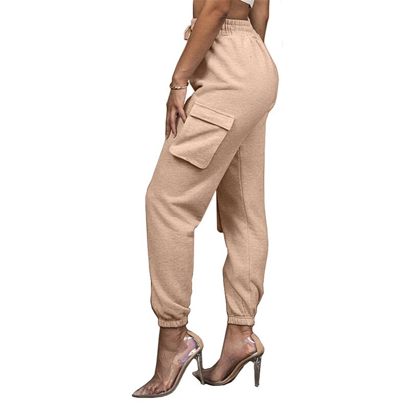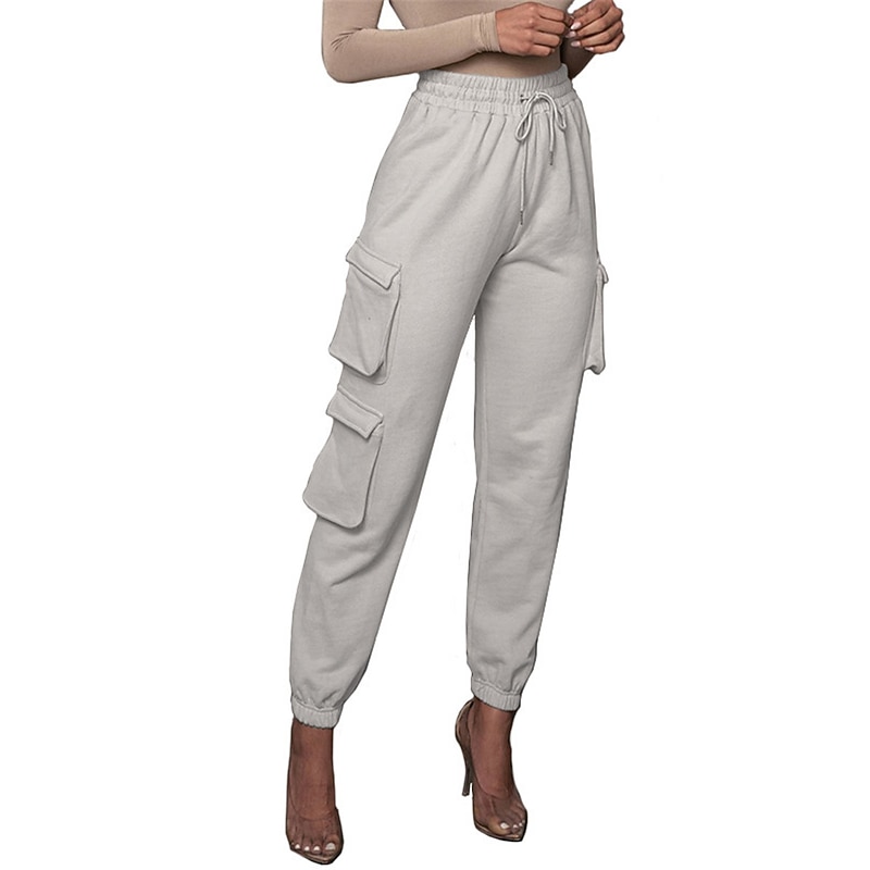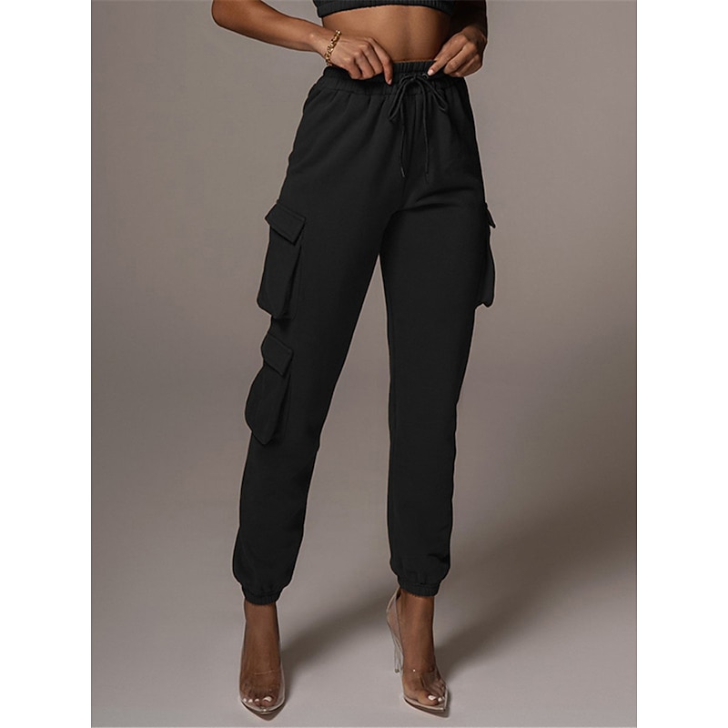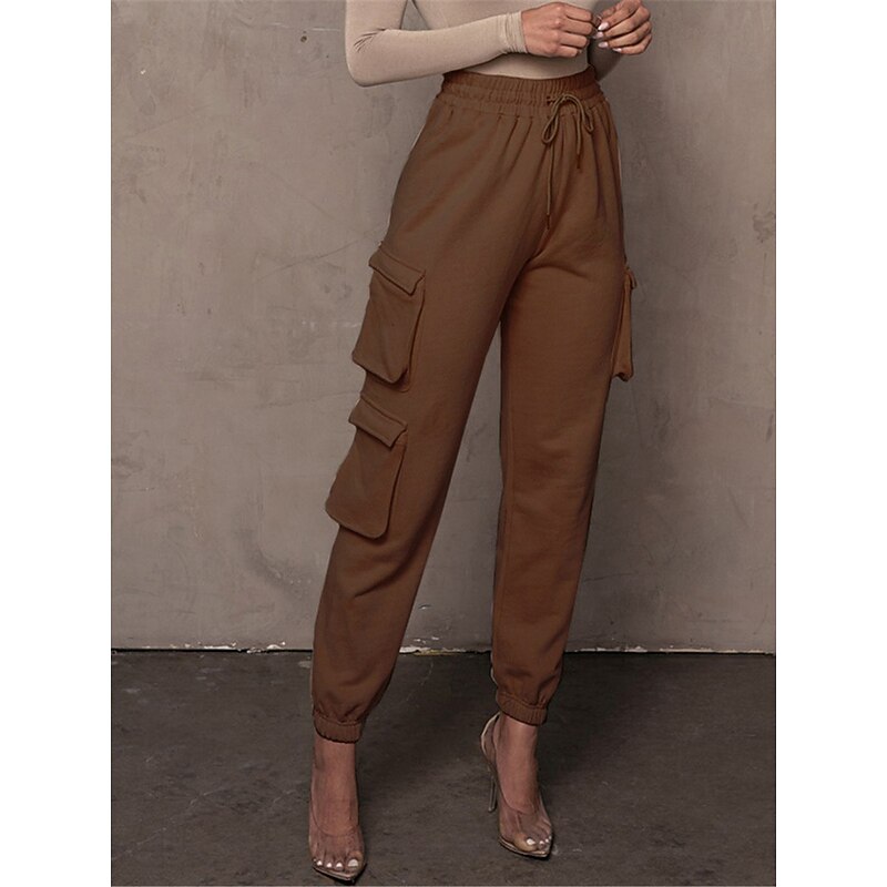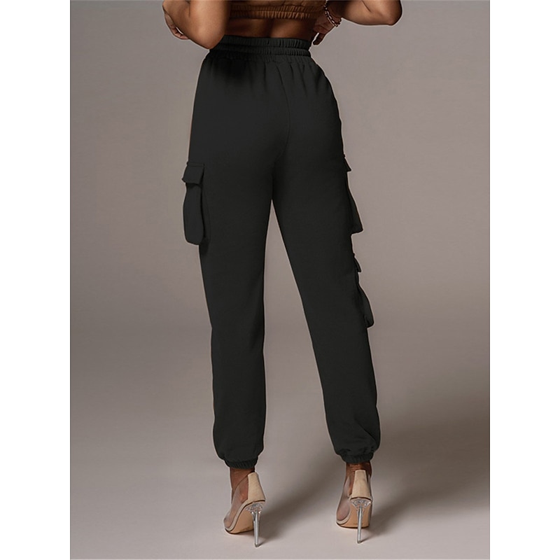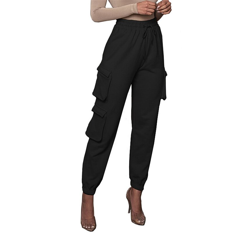 Highlights [Fabric and Comfort] : Crafted from high-quality cotton, these women's cargo pants offer a breathable and soft feel with micro-elastic properties, ensuring lasting comfort throughout the day. [Fit and Style] : The pants boast a high-waist design with a relaxed fit, featuring an elastic waistband and drawstring closure for a customizable and comfortable fit. The full-length silhouette and elasticized cuffs provide a modern, tailored appearance. [Design Highlights] : These cargo pants are enhanced with multiple large side pockets, offering a functional and utility-inspired touch while providing ample storage for small essentials. The solid color pattern adds a chic and versatile element to the design. [Occasions] : Ideal for daily wear, these cargo pants are perfect for casual outings, vacations, streetwear looks, or simply going out. Pair them with a variety of tops and footwear for a stylish and versatile outfit fit for fall and winter seasons. [Available Sizes] : These cargo pants are available in a range of sizes from S to 2XL, allowing you to find the perfect fit for your needs.