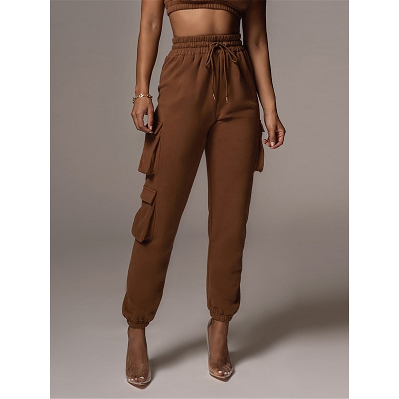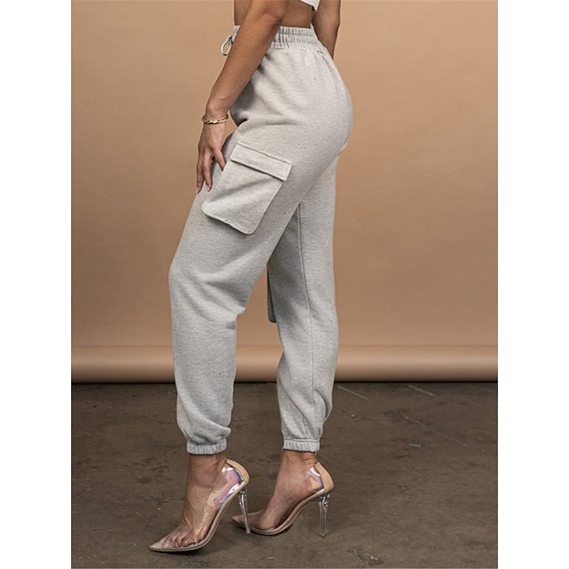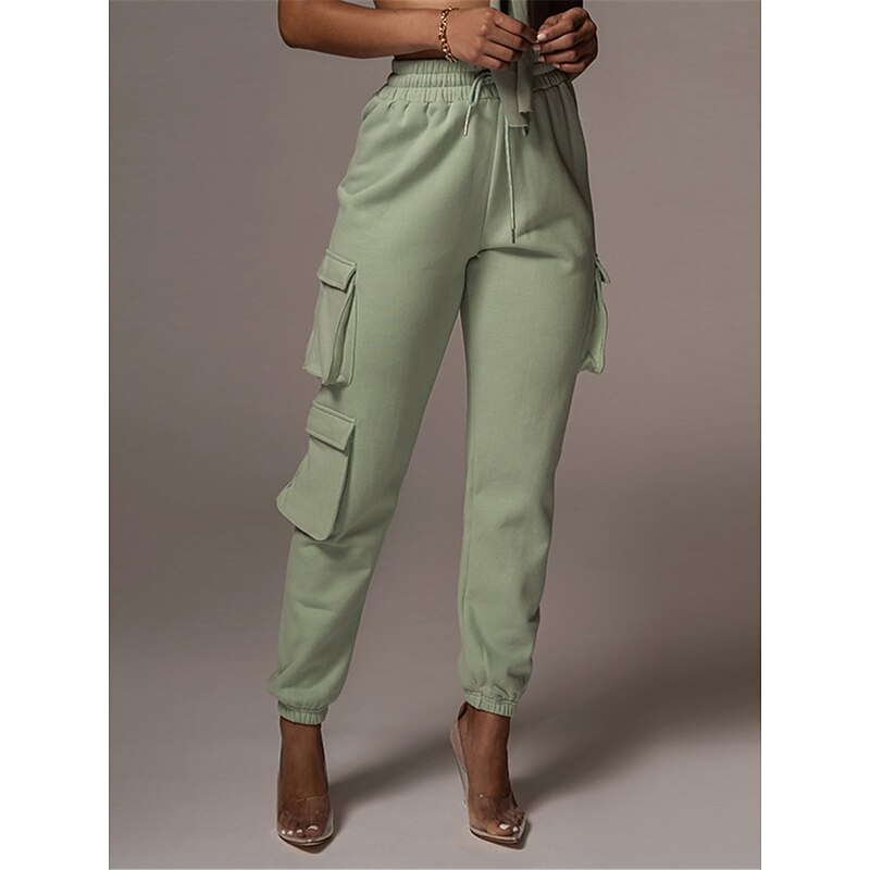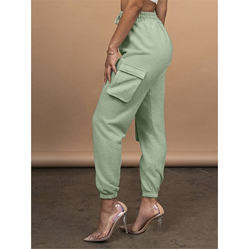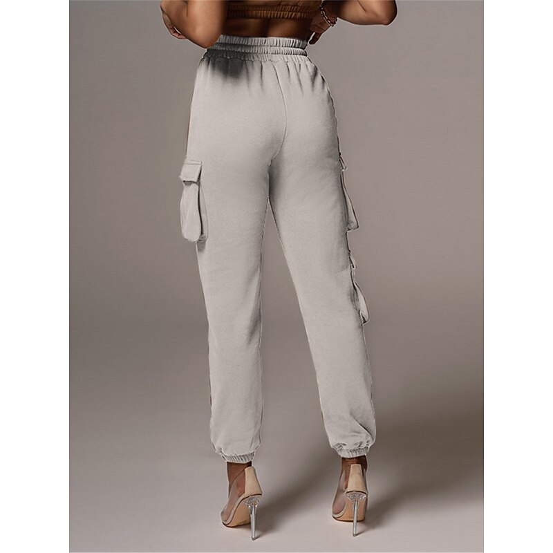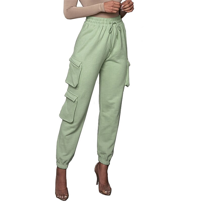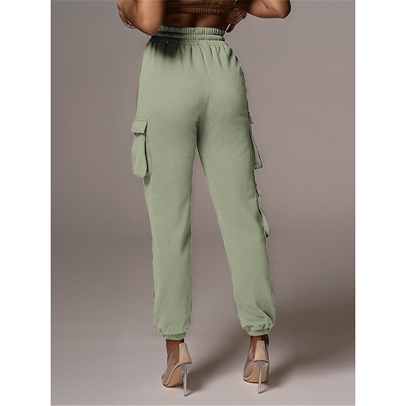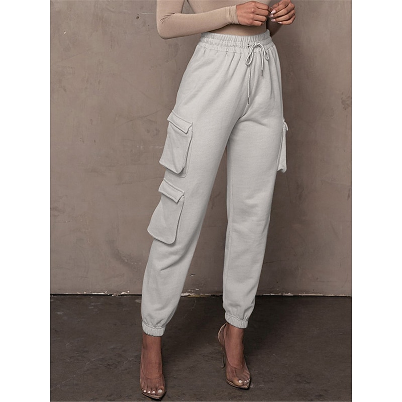 Highlights [Fabric and Comfort] : Crafted from high-quality cotton, these women's cargo pants offer a breathable and soft feel with micro-elastic properties, ensuring lasting comfort throughout the day. [Fit and Style] : The pants boast a high-waist design with a relaxed fit, featuring an elastic waistband and drawstring closure for a customizable and comfortable fit. The full-length silhouette and elasticized cuffs provide a modern, tailored appearance. [Design Highlights] : These cargo pants are enhanced with multiple large side pockets, offering a functional and utility-inspired touch while providing ample storage for small essentials. The solid color pattern adds a chic and versatile element to the design. [Occasions] : Ideal for daily wear, these cargo pants are perfect for casual outings, vacations, streetwear looks, or simply going out. Pair them with a variety of tops and footwear for a stylish and versatile outfit fit for fall and winter seasons. [Available Sizes] : These cargo pants are available in a range of sizes from S to 2XL, allowing you to find the perfect fit for your needs.