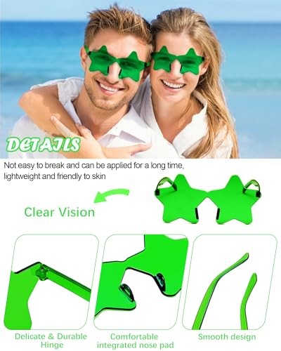 Origin: ImportedWhat’s Included: 40 pairs of party green star sunglasses bulk— a fun, sophisticated design that suits almost everyone. Perfect for gifting to friends and making a bold statement! These unique star glasses are sure to turn heads wherever you goTrendy & Playful Design: Bright candy-colored star frames add a pop of fun to any outfit while filtering glare. The frameless, novel look keeps these party glasses fashion-forward and eye-catching, so you’ll stand out effortlesslyDurable & Comfortable: Made from high-quality PC material, these star sunglasses bulk are lightweight, shatter-resistant, and super smooth for long-lasting wear. The flexible, skin-friendly frames stay in shape while fitting comfortably on any faceOne Size Fits Most: These colorful star glasses bulk are perfect for teens and adults on most face shapes! Ideal for parties, beach trips, festivals, Halloween, or everyday fun. They also make an awesome unique gift for friends, siblings, or family during the holidaysExceptional Customer Support: We are committed to making your purchase completely satisfactory. If your YWL green star sunglasses arrive with any defects or issues, simply contact us through Amazon Messages, and we'll make it right immediately Perfect for everyday use. first-class materials and excellent craftsmanship ensure long-lasting durability.
