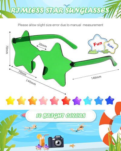 40 Pairs Rimless Star Sunglasses Bulk Wholesale Transparent Candy Color Star Glasses for Women Men Party Favors