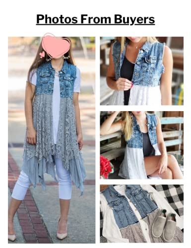 More information about FindThy Women’s Denim Vest Sleeveless Ripped Draped Patchwork Cardigan Jean Vest with Irregular Lace Extender Hem