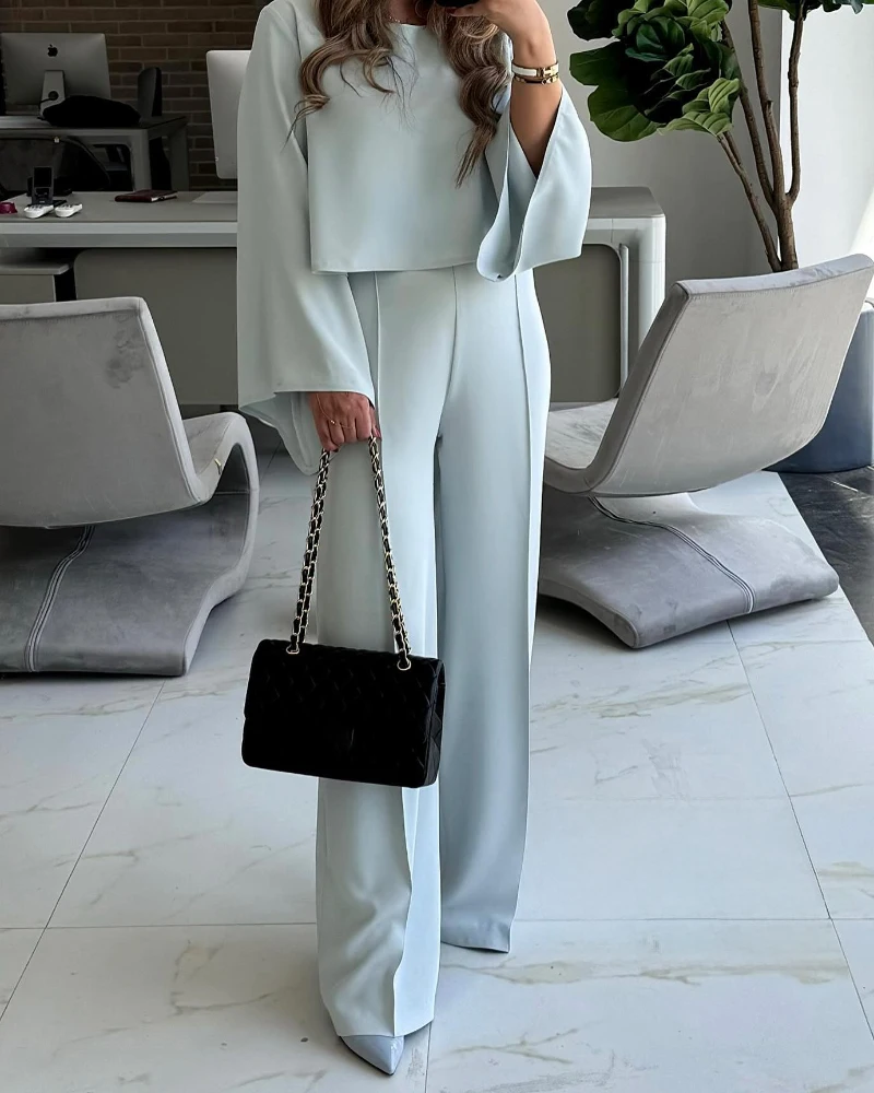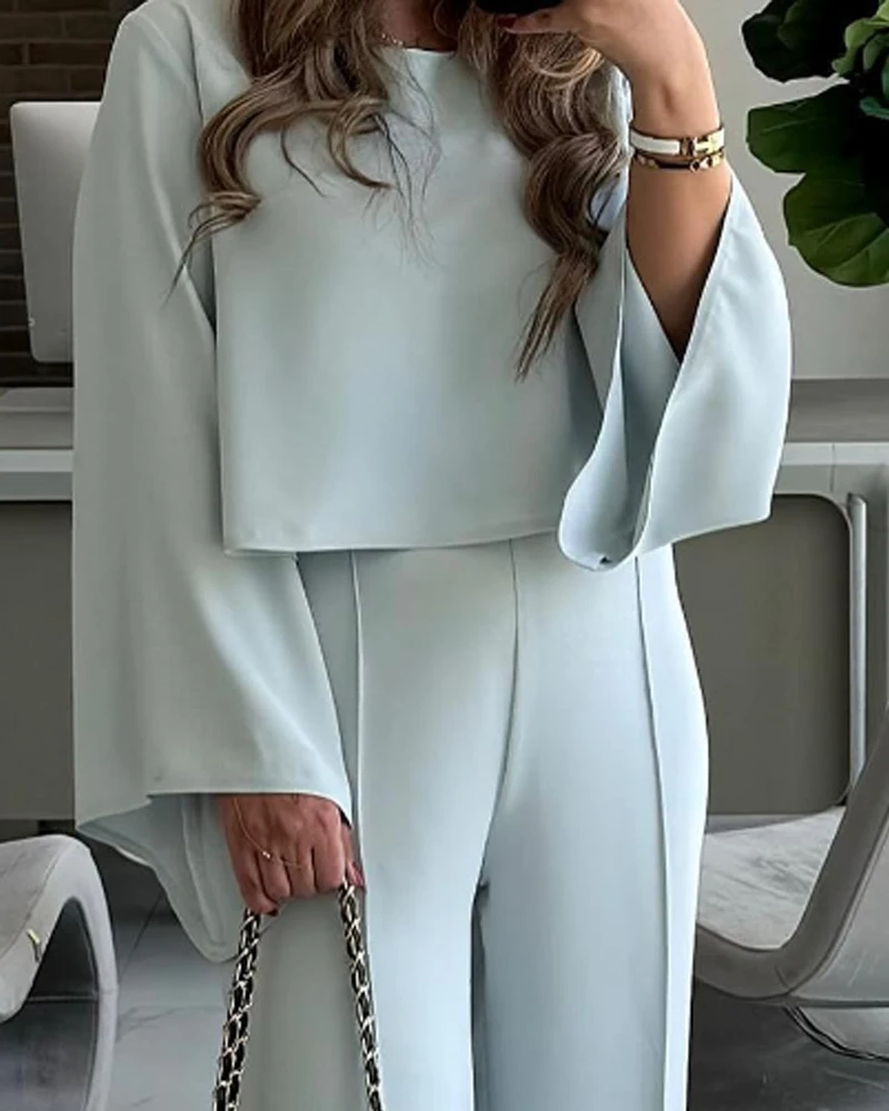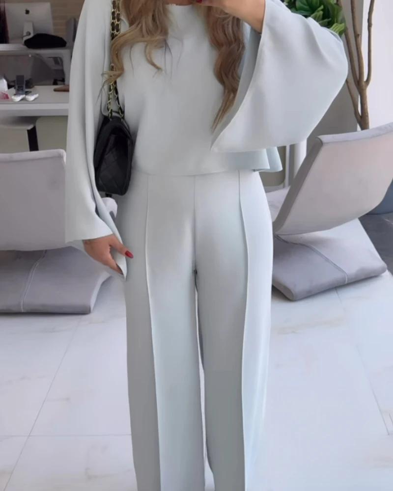 2025 Spring 2 Piece Round Neck Bell Sleeve Top and Casual Loose Fit Pants Set