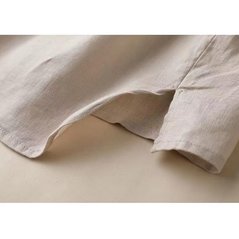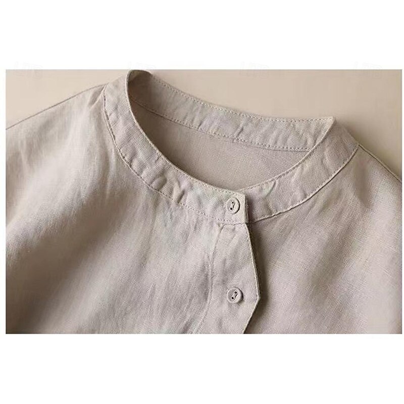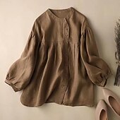 Highlights [Fabric] : Crafted from a premium blend of cotton and linen, this blouse offers a soft and lightweight feel, ensuring both comfort and breathability. Ideal for spring and fall seasons, the fabric provides a gentle and refreshing experience against the skin. [Fit] : The blouse features a regular fit that provides a relaxed yet modern silhouette. It's designed for ease of wear, making it perfect for everyday comfort without sacrificing elegance. [Design Highlights] : This fashionable women's blouse showcases a simple round neckline and a unique asymmetrical button-down front that adds a modern flair. The gathered, voluminous three-quarter-length sleeves enhance the elegant feel, while the neutral beige and khaki tones ensure versatility. [Occasions] : Perfect for street and daily casual wear, this blouse is a versatile wardrobe staple. Whether youβre heading to a relaxed brunch or a casual day out, it pairs effortlessly with different bottoms to suit various occasions. [Size Range] : Available in a range of sizes from M to 3XL, this blouse accommodates a variety of body types, ensuring a comfortable fit for everyone. Perfect for everyday use. excellent materials and excellent craftsmanship ensure long-lasting durability.