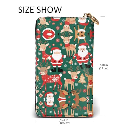 HOT ! Leather Wallet 7.48 x 4.13 in - Stylish and Durable Wallet for Women with Multiple Compartments and Zipper Design Santa Claus and Christmas deer Pattern