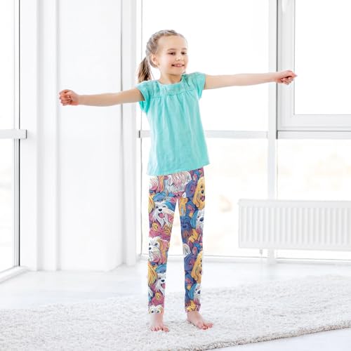 Colorful Dog Head Girls Casual Leggings for Kids Printed Long Pant Bottoms Stretch and Soft 7